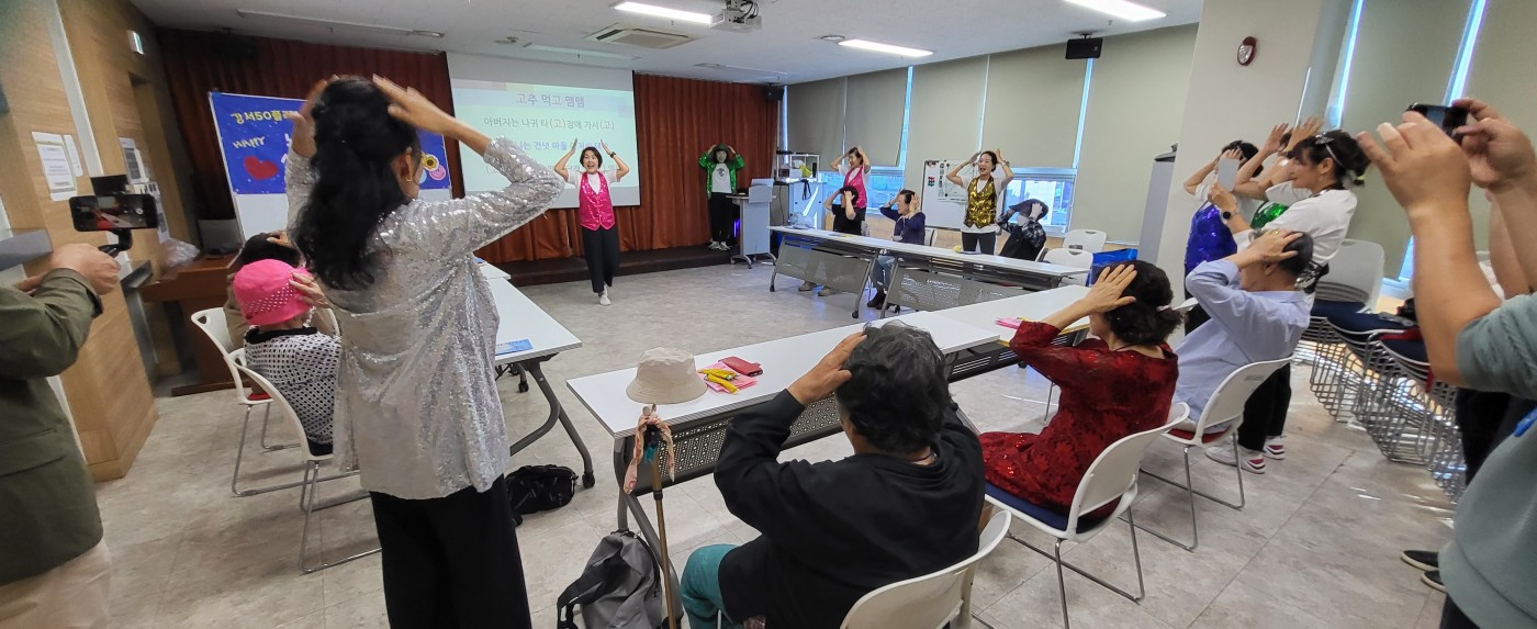 50+센터 봉사단 연계, 인지활동 전통놀이 진행 페이지 정보 작성자 관리자 작성일2023-09-25 13:04 조회1,070회 관련링크 이전글 다음글 목록 본문 50+센터 인지놀이봉사단과 연계하여 추석을 기념하며 전통놀이를 접목한 인지활동을 진행하였습니다. 장건강댄스를 서두로 옛 민요를 이용한 손유희와 전통놀이(윷놀이)까지!!어르신들과 신나는 놀이활동을 통해 신체와 두뇌를 함께 자극해볼 수있는 시간이 되었답니다!! ^^#1. 장건강 댄스!!#2. 옛 동요를 이용한 손유희#3. 전통 윷놀이 #4. 함께여서 행복한 단체사진! 이전글 다음글 목록
